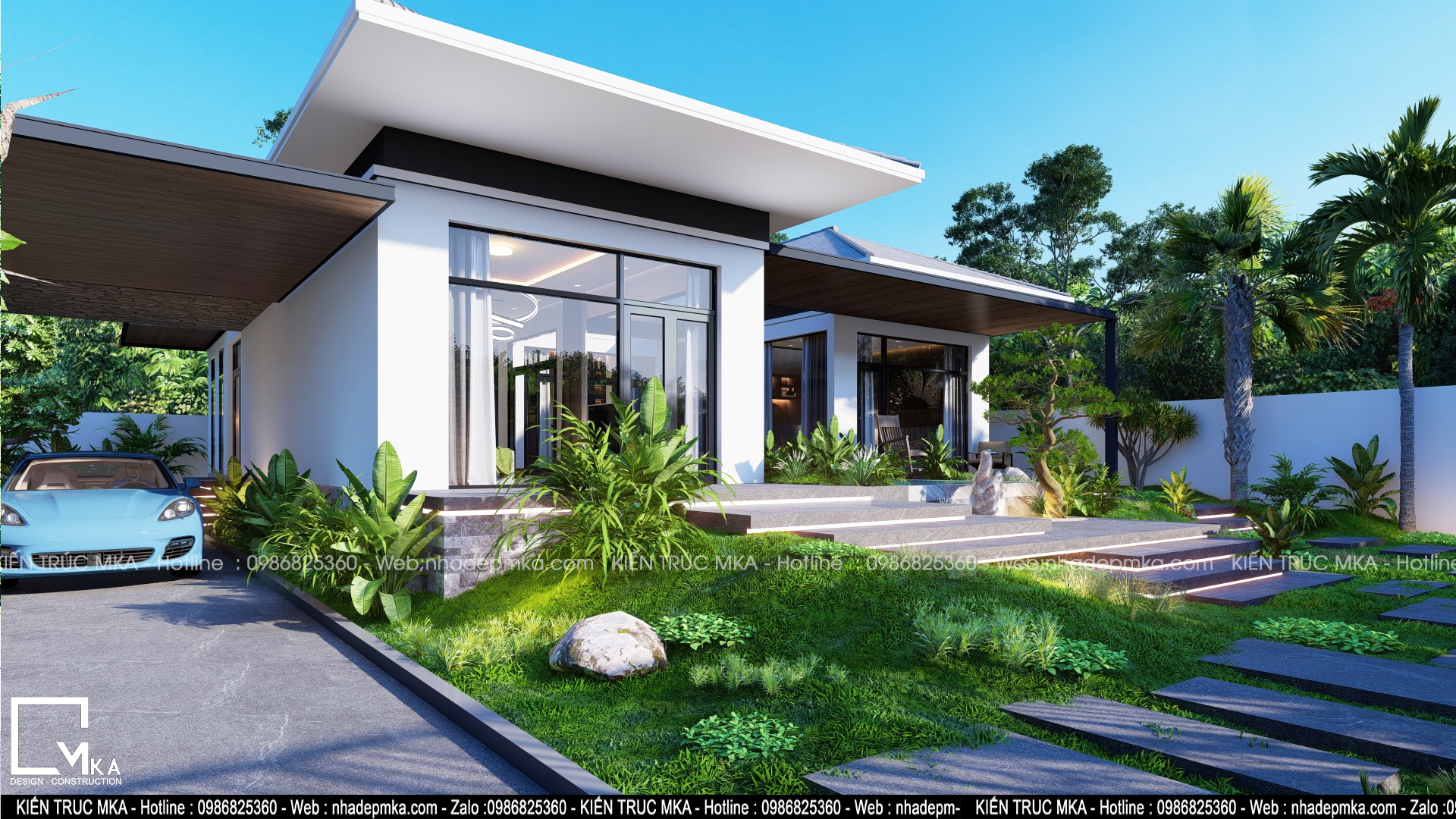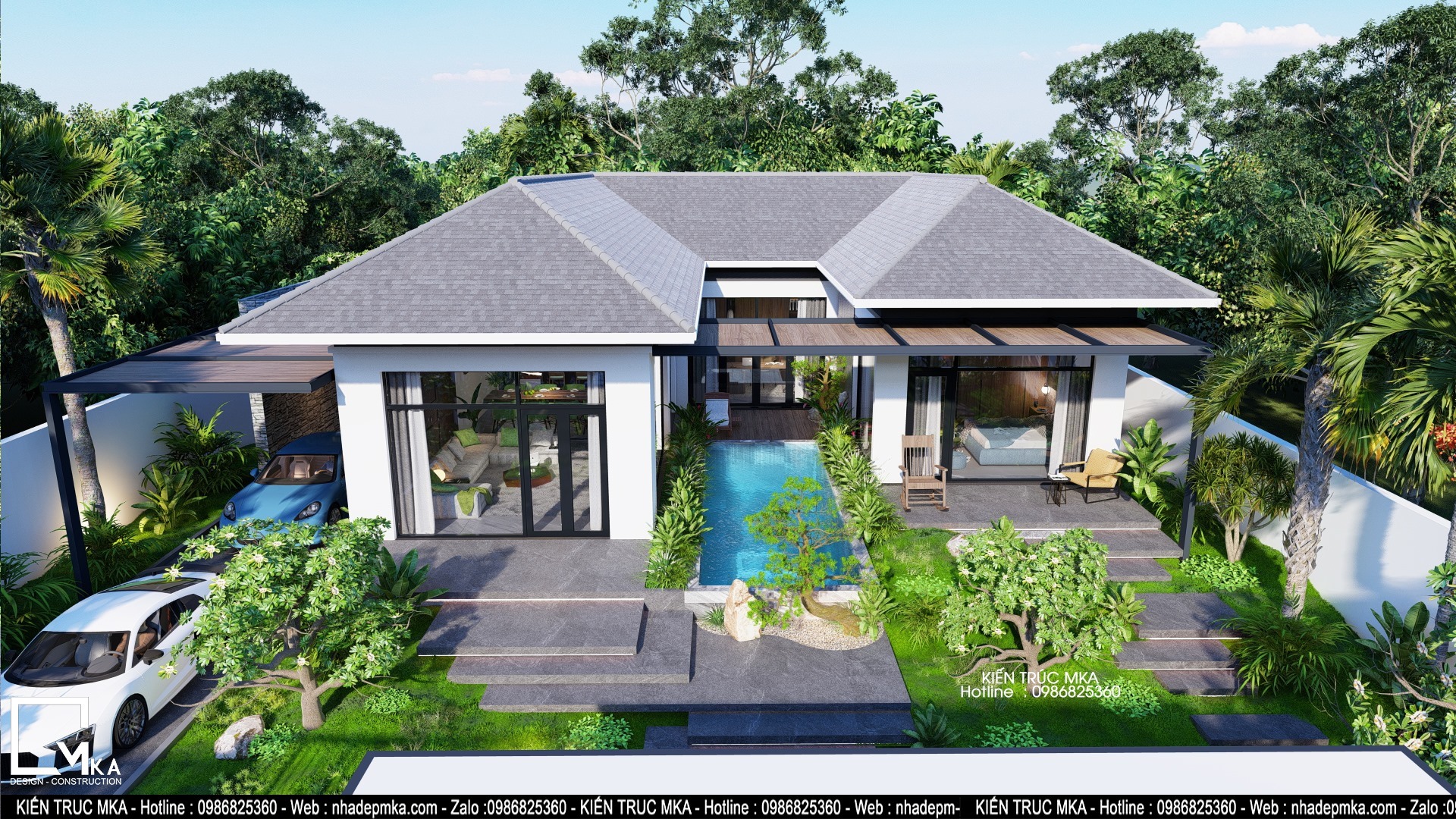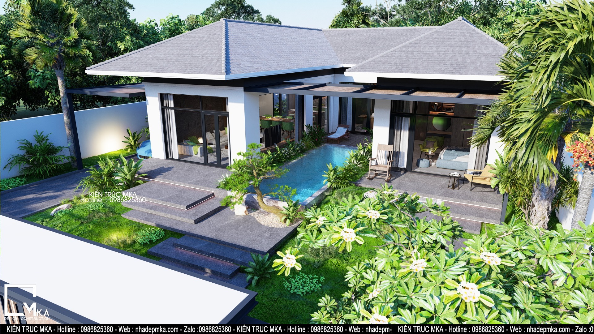 Mẫu Biệt thự nghỉ dưỡng là mẩu . Nhà không cần quá rộng nhưng vườn và hồ bơi là phải có.