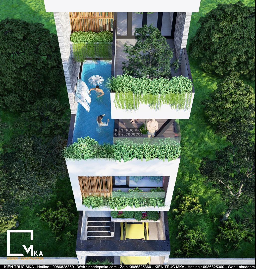 Mẫu Nhà phố 4 tầng hiện đại đang là 1 lựa chọn hàng đầu cho khách hàng ở thành phố .Với quỷ đất nhỏ và nhu cầu sử dụng cao.Để đáp ứng được nhu cầu của gia chủ khi diện tích đât nhỏ nhưng chủ nhà lại là người yêu thiên nhiên và muốn có cả hồ bơi lẫn hồ koi. Đội ngủ kiến trúc sư của MKA đã đưa ra phương án thiết kế hồ bơi ở lầu 2 của căn nhà. Xem thiết kế nội thất của căn nhà tại đây