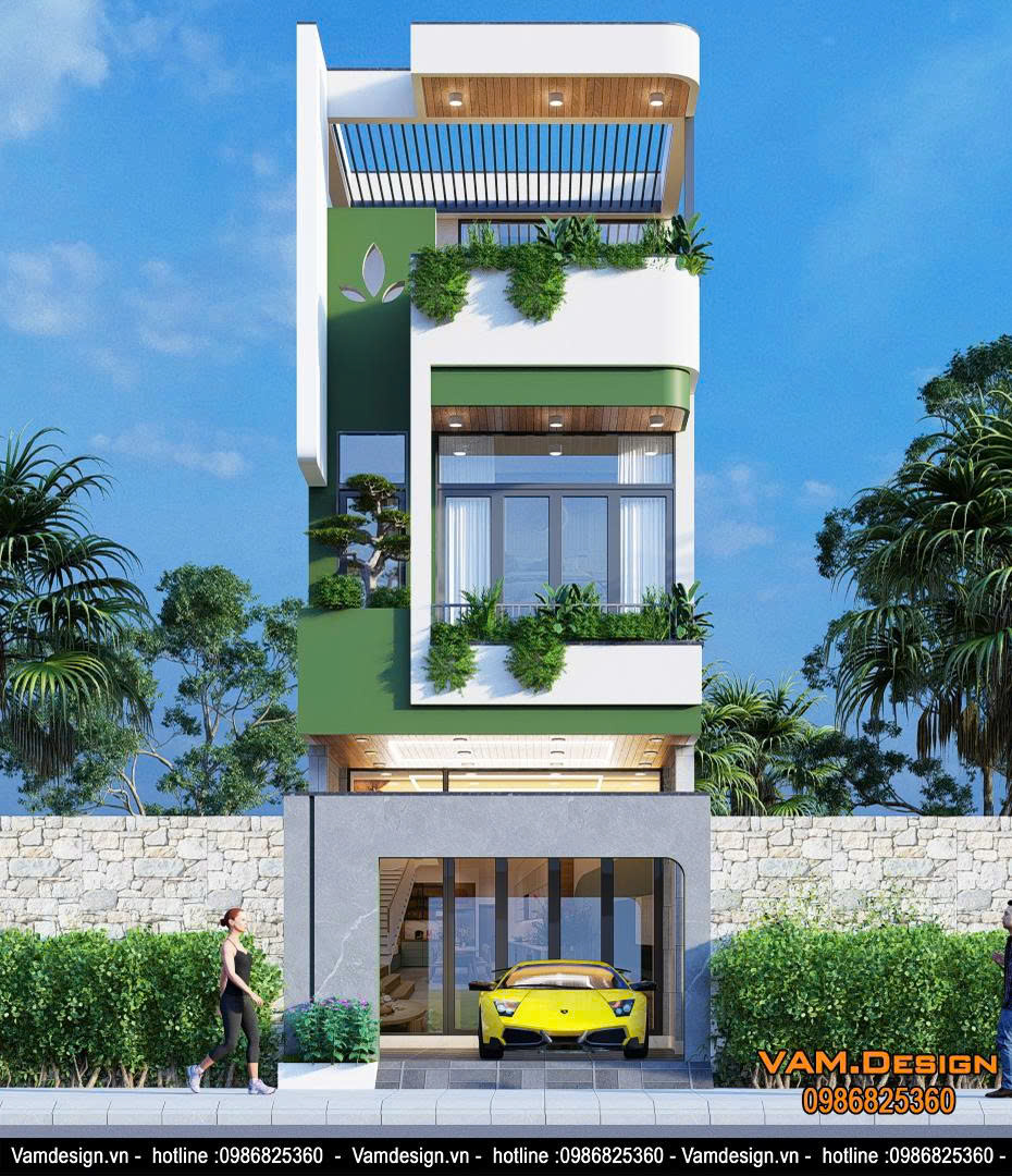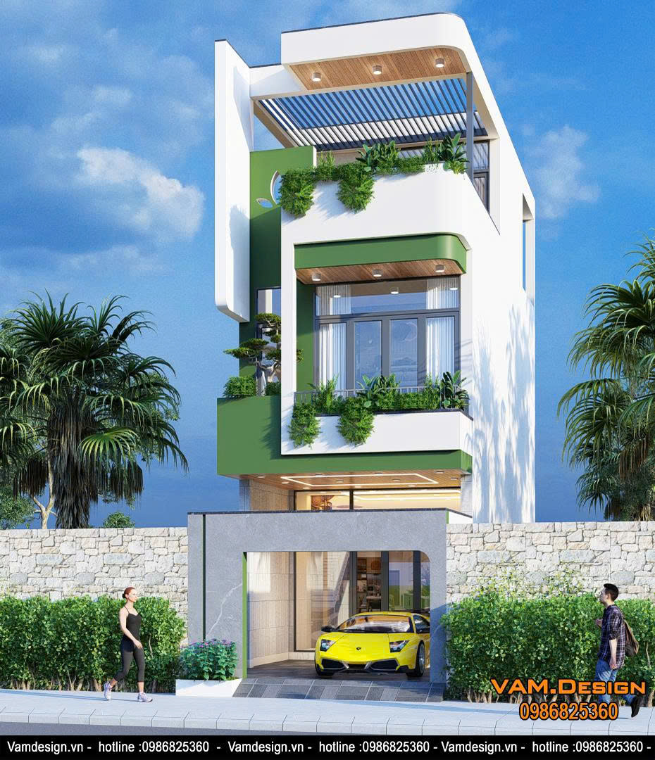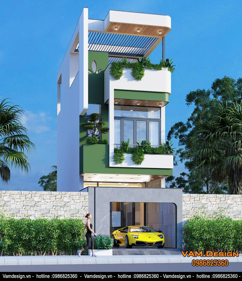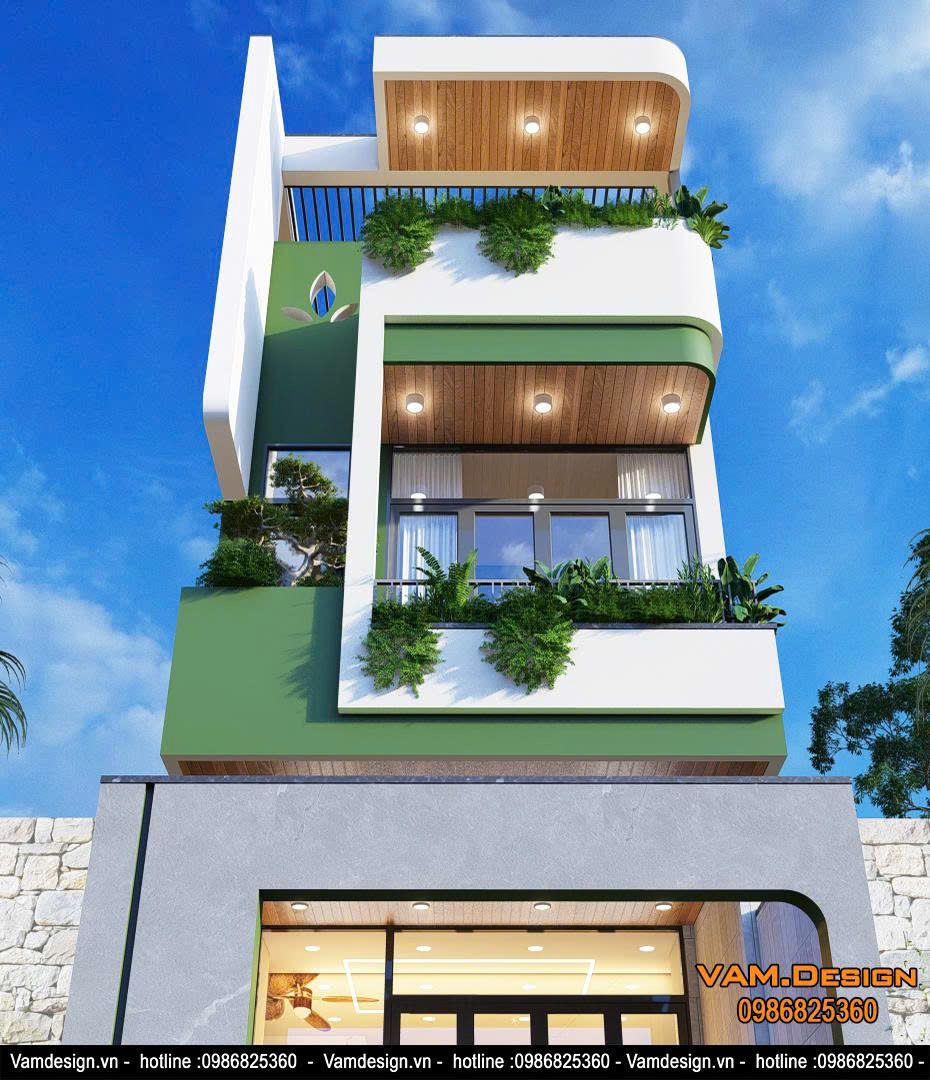 Tích Hợp "Sống Xanh": Một trong những điểm mạnh nhất của Vamdesign là khả năng lồng ghép cây xanh vào kiến trúc một cách thông minh. Các bồn cây và tiểu cảnh được bố trí hợp lý ở ban công, vừa làm đẹp cho mặt tiền, vừa mang lại không khí trong lành cho ngôi nhà.