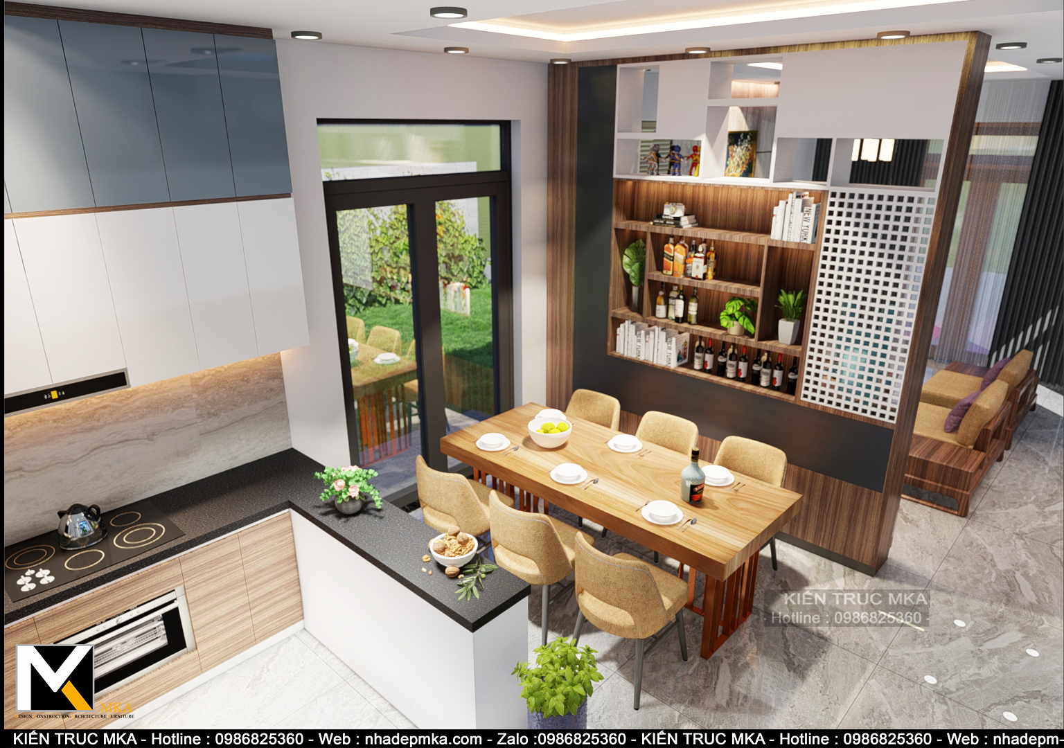 Với thiết kế nội thất biệt thự hiện đại. Bàn ăn được thiết kế gần bếp tạo một cảm giác ấm cúng mỗi khi gia đình quây quần bên nhau