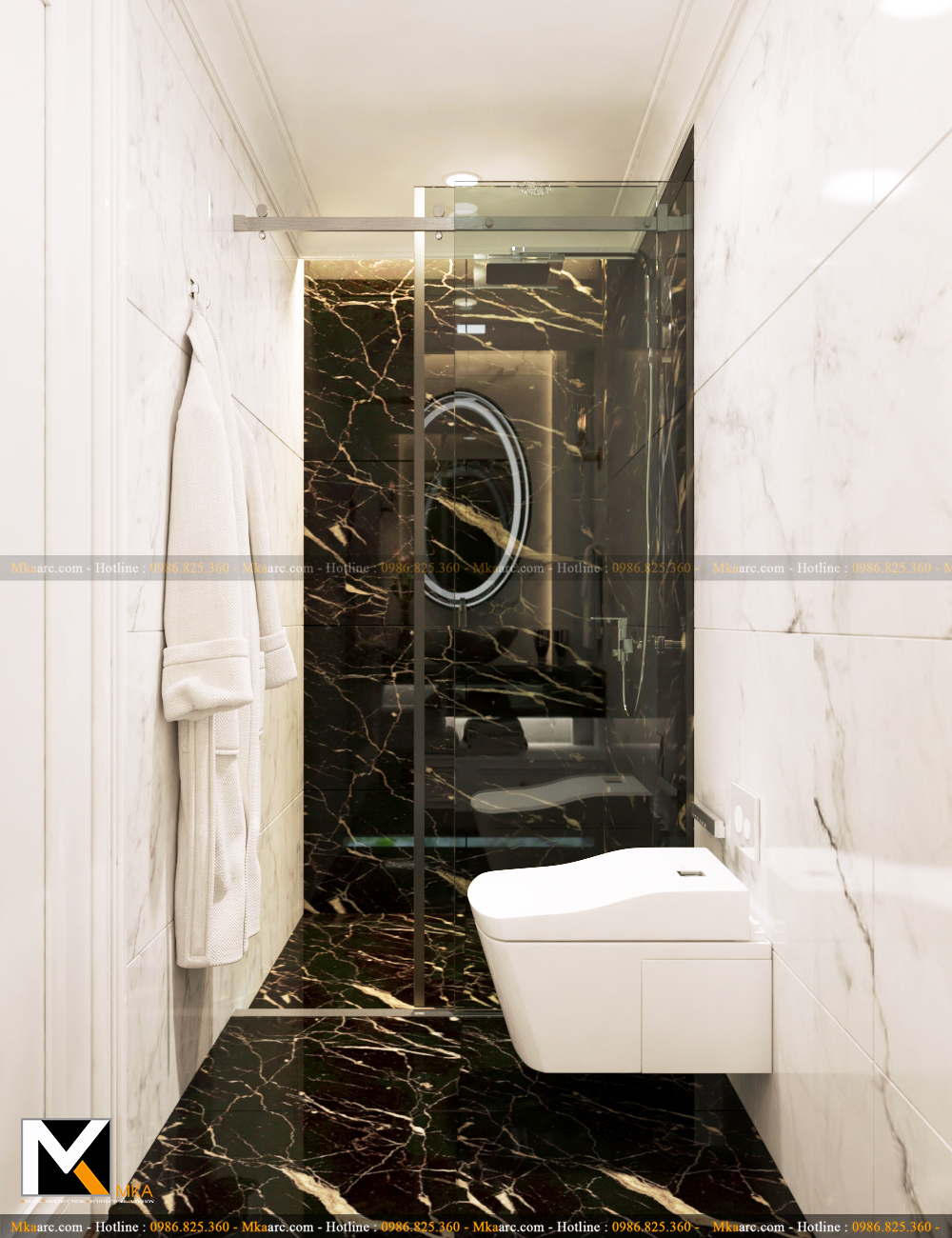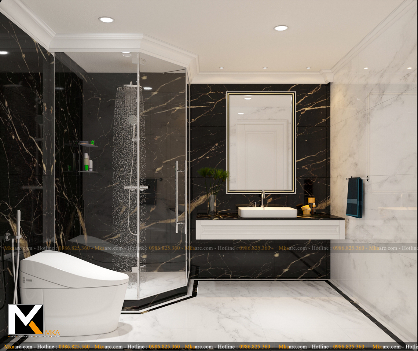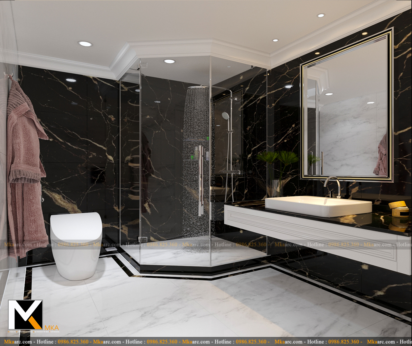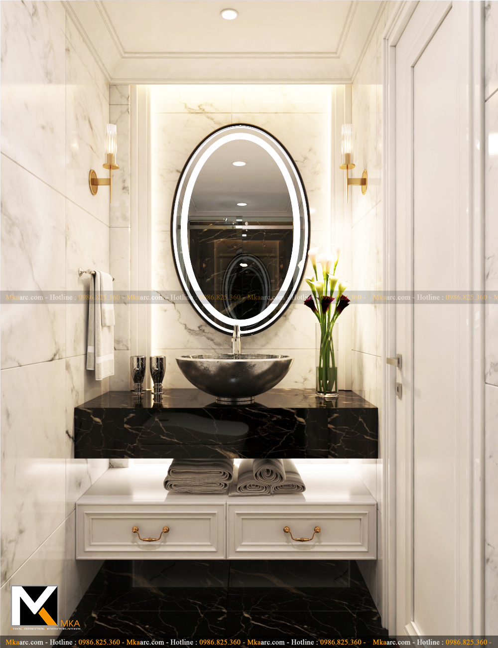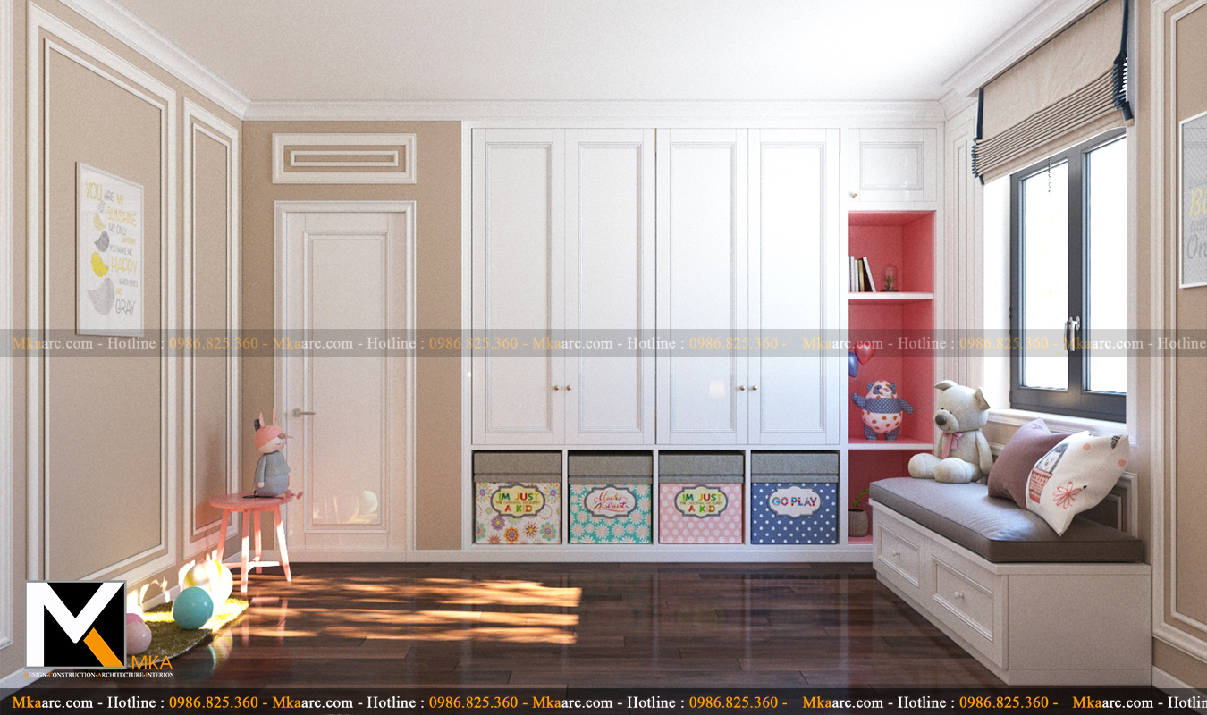 Khi thiết kế nội thất biệt thự tân cổ điển , đội ngũ KTS đã cố gắng đưa ra giải pháp tiện nghi và tối giản nhất cho không gian nghỉ ngơi chính của gia chủ tại phòng ngủ . Đồ nội thất trong căn phòng này bao gồm có giường ngủ, tab đầu giường, tủ quần áo âm tường, bàn trang điểm.