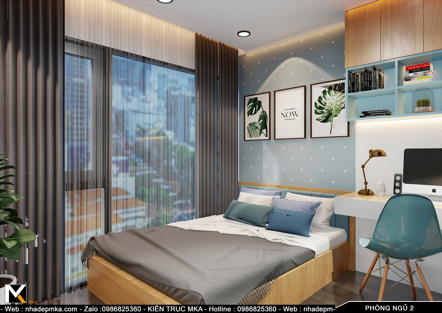 Thiết kế bản thô của phòng ngủ phụ 1 không có cửa sổ mà thay vào đó là 1 cửa trượt hướng ra ban công bên ngoài.