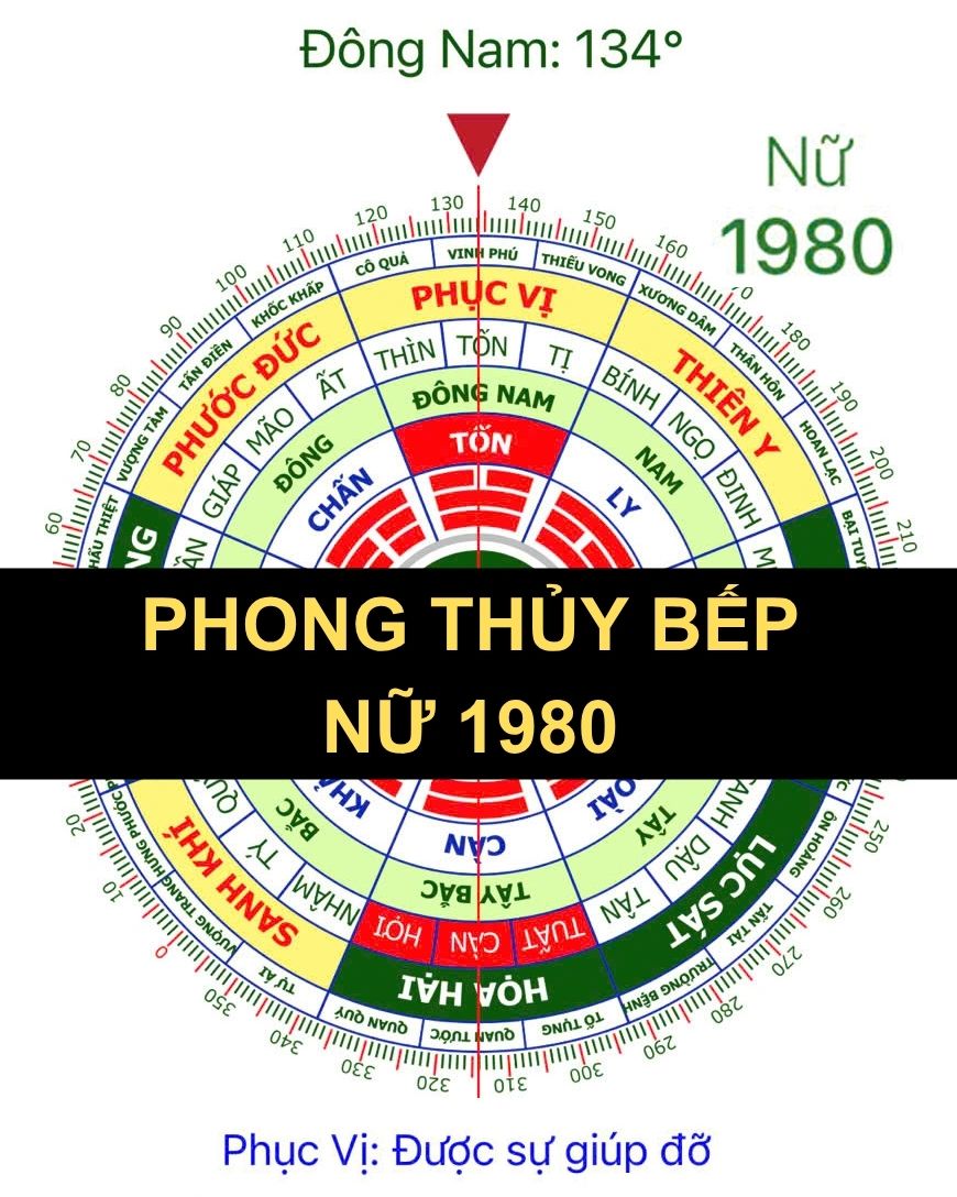 Ví dụ về cách đặt bếp lý tưởng cho Nữ Canh Thân 1980: