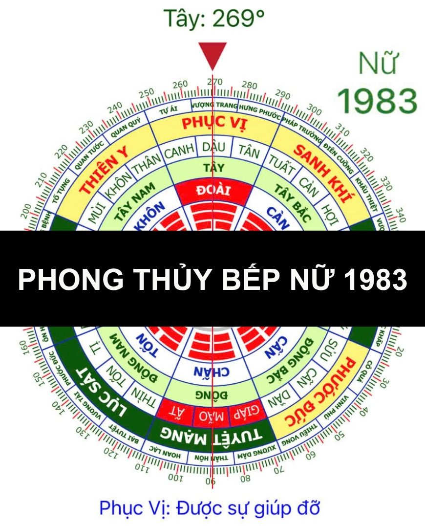 Quy tắc quan trọng hàng đầu trong phong thủy bếp là "Tọa Hung Hướng Cát". Tức là bếp nên đặt ở phương vị xấu của gia chủ, nhưng miệng bếp (lối ra của lửa) phải quay về phương vị tốt. Với nữ Quý Hợi 1983 cung Khảm (Đông Tứ Mệnh), bạn cần chú ý: