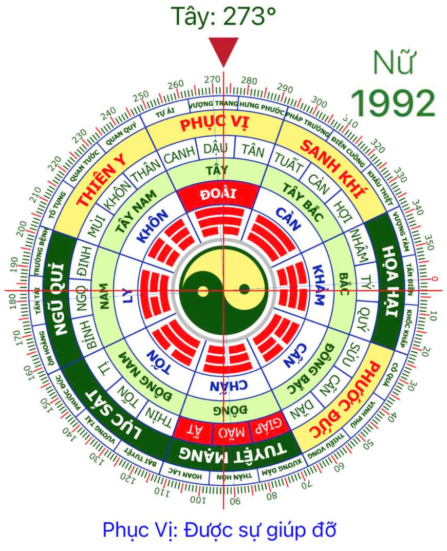 Đối với nữ giới sinh năm 1992 (Cung Ly, Đông Tứ Mệnh), các hướng tốt (Cát) và xấu (Hung) như sau: