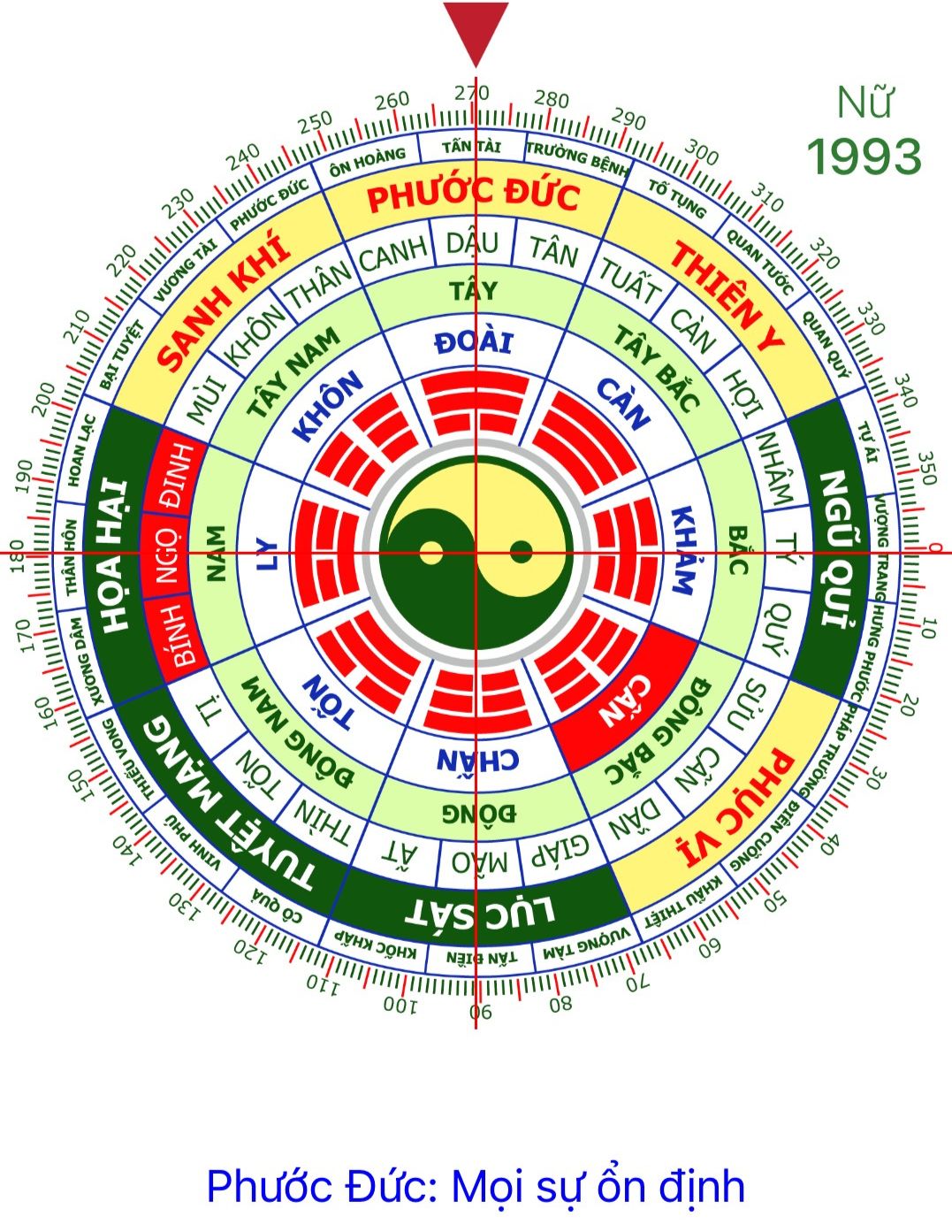 Với nữ Quý Dậu 1993 (Tây Tứ Mệnh), các hướng tốt để bếp nhìn về là: