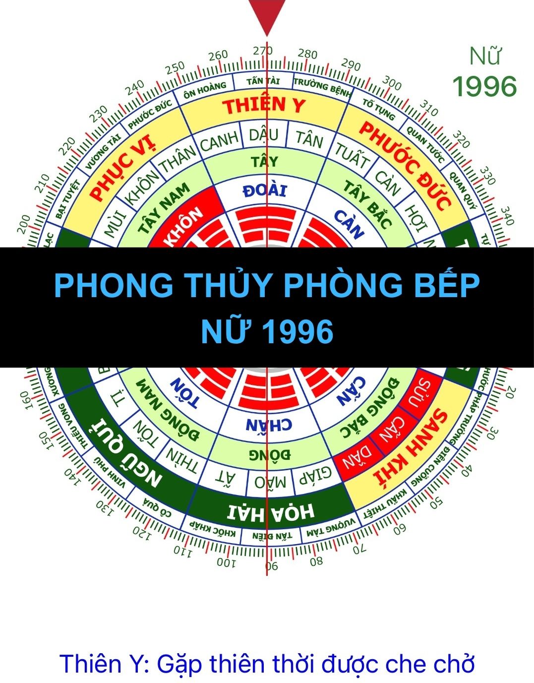 Theo phong thủy Bát Trạch, nữ 1996 thuộc cung Cấn, hành Thổ, thuộc Tây Tứ Mệnh. Nguyên tắc cơ bản khi đặt bếp là "tọa hung hướng cát", nghĩa là đặt bếp ở hướng xấu để hóa giải năng lượng tiêu cực, đồng thời hướng mặt bếp về hướng tốt để thu hút tài lộc và may mắn.
