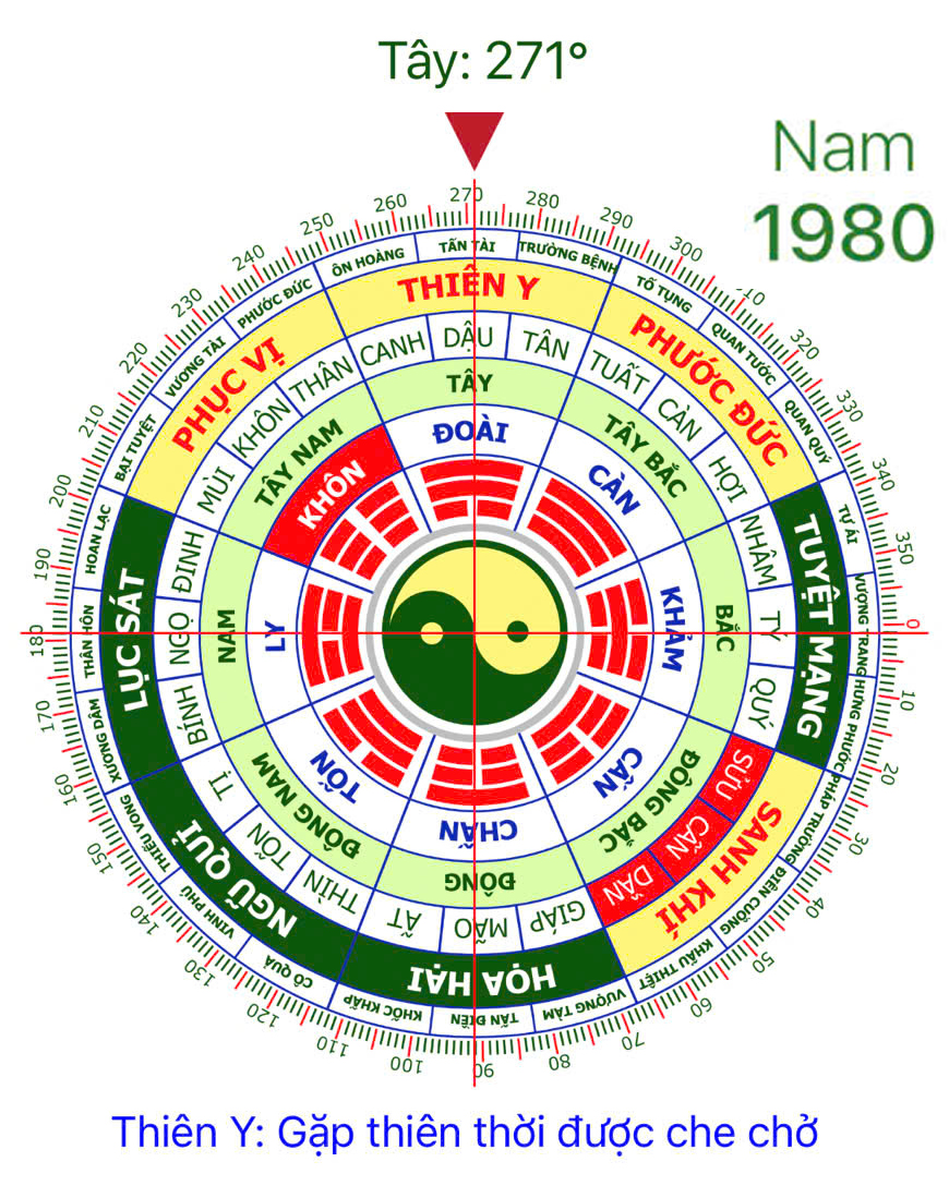 Theo bản đồ phong thủy Bát Trạch, nam Canh Thân 1980 thuộc cung Khôn (Thổ), tương ứng với nhóm Tây Tứ Mệnh. Điều này cực kỳ quan trọng, bởi nó sẽ quyết định những hướng nào sẽ là "điểm tựa" vững chắc cho giấc ngủ của bạn, và những hướng nào cần phải tránh xa như "vùng cấm".
