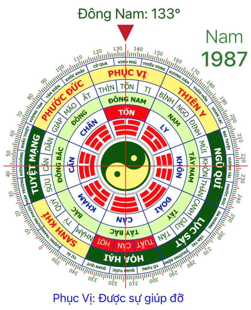 Đông Nam (Phục Vị): Bạn cần sự bình yên, tinh thần minh mẫn và may mắn trong học hành, thi cử? Hướng Đông Nam sẽ là lựa chọn tuyệt vời, giúp bạn củng cố nội lực và sự vững vàng trong cuộc sống.