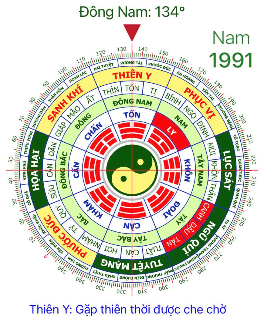 Đối với nam giới sinh năm 1991, các hướng tốt (Cát) và xấu (Hung) như sau:
