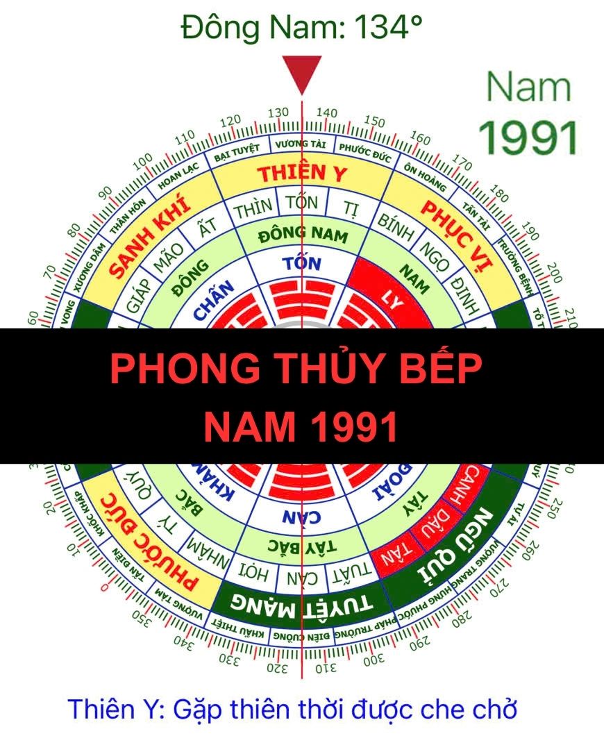 Nam giới sinh năm 1991, tuổi Tân Mùi, có mệnh Lộ Bàng Thổ (Đất đường đi). Cung mệnh của bạn là Ly, thuộc Đông Tứ Mệnh. Trong phong thủy nhà ở, bếp nấu đóng vai trò cực kỳ quan trọng vì nó không chỉ là nơi tạo ra bữa ăn mà còn ảnh hưởng trực tiếp đến sức khỏe, tài lộc và sự hòa thuận của gia đình.