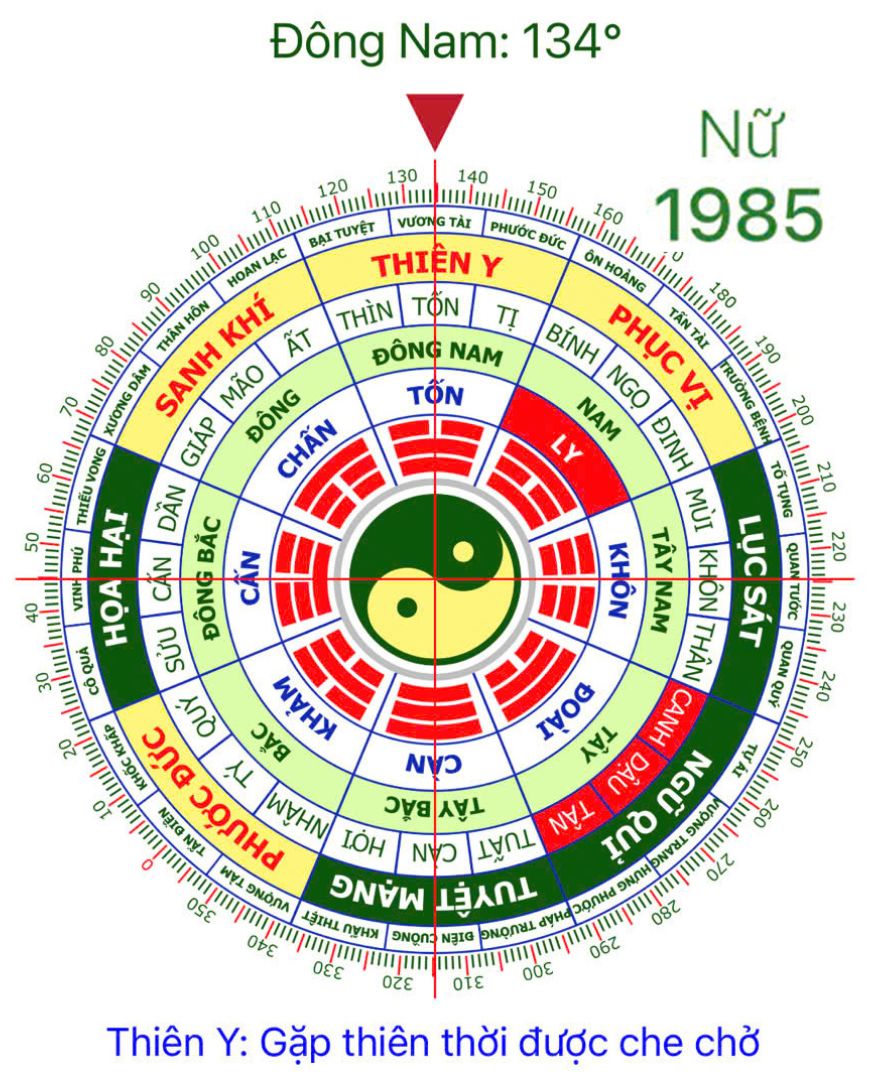 - Hướng Đông Nam (Thiên Y): Được che chở về sức khỏe, ít bệnh tật, con đường sự nghiệp thuận lợi, có quý nhân phù trợ.