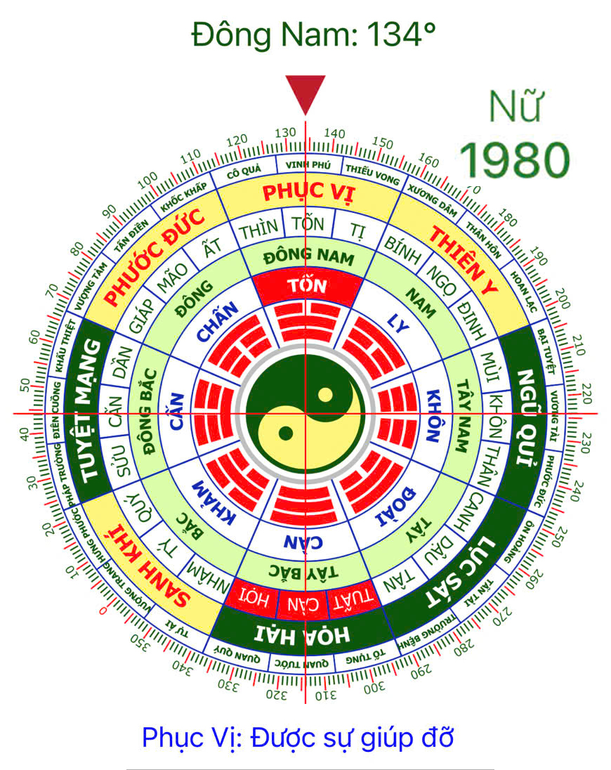 - Hướng Đông Nam (Tuyệt Mệnh): Hướng cực kỳ xấu, có thể gây mất mát tài sản, bệnh tật nghiêm trọng, ảnh hưởng đến tuổi thọ.