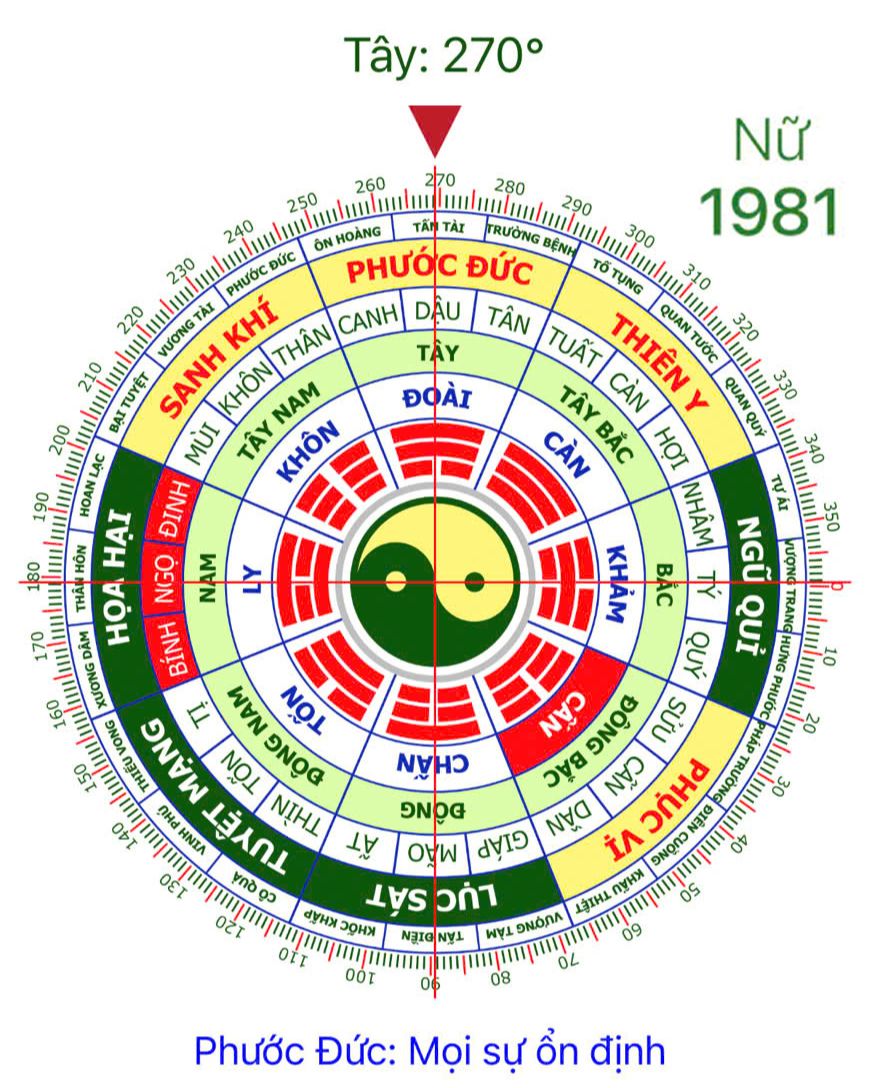 - Niên Mệnh Năm Sinh: Tây Tứ Mệnh.