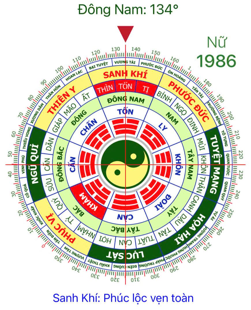 - Hướng Đông Nam (Tuyệt Mệnh): Cực kỳ xấu, dễ gặp tai họa, bệnh tật nặng, thậm chí phá sản.