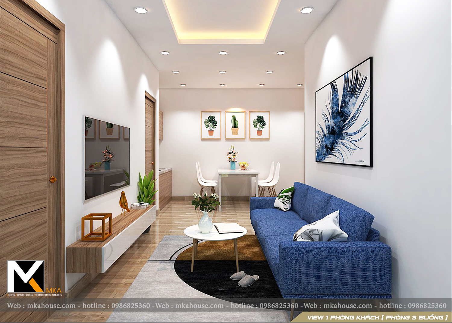 Bên trong BUNGALOW 3 BUỒNG, nội thất được kiến trúc sư của MKA thiết kế với sự chú ý đến mỗi chi tiết, tạo nên một không gian sống sang trọng và hiện đại. Với ghế salon thoải mái, các bức tranh và tivi được treo gần cửa chính, quý khách sẽ có được trải nghiệm giải trí tuyệt vời.