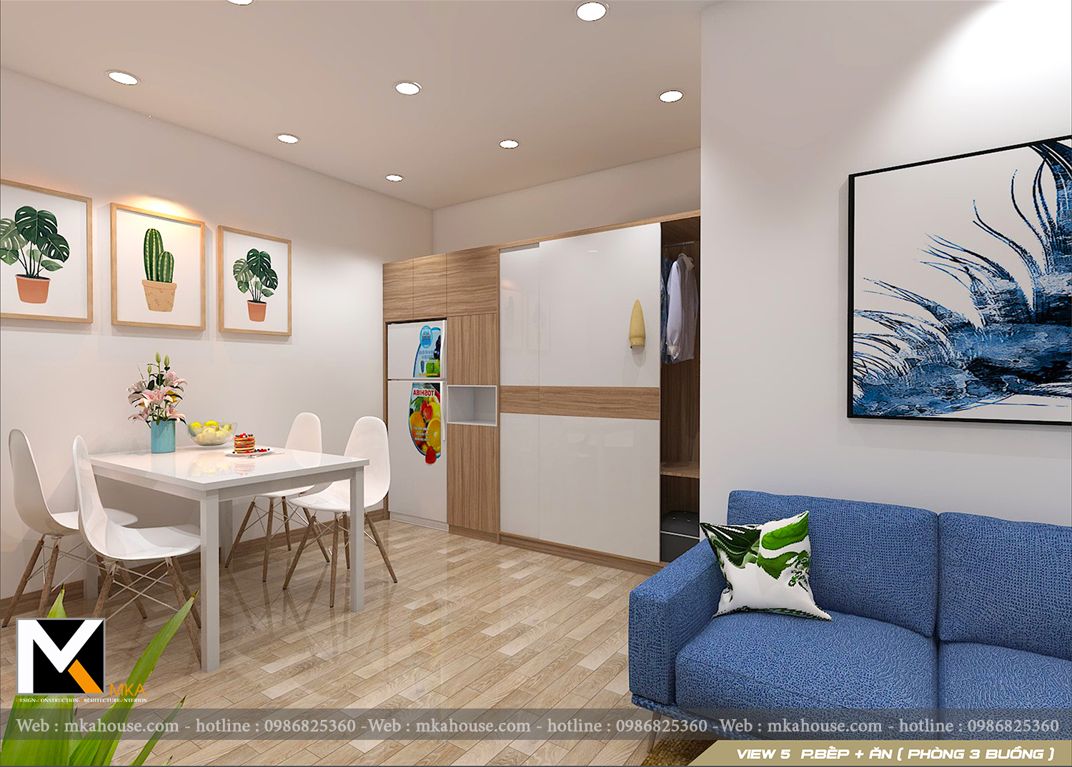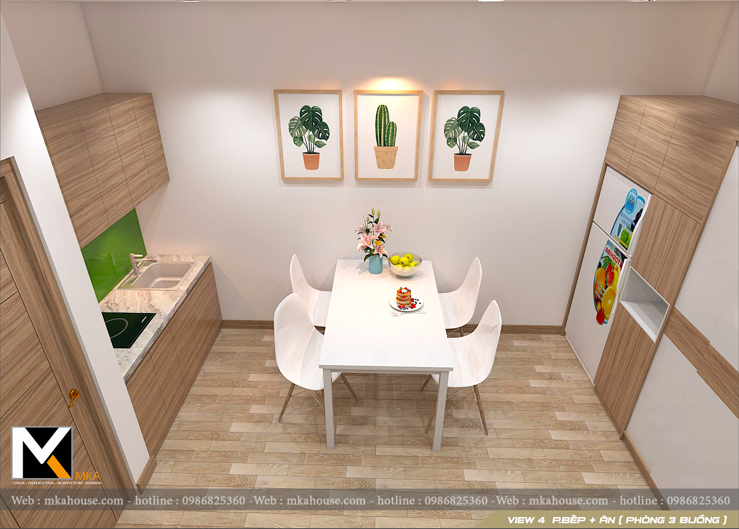 Bếp và bàn ăn tiện nghi, tủ lạnh được thiết kế âm tường tiết kiệm diện tích